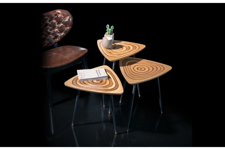 A set of three modern style tables with a very sleek & contemporary design.