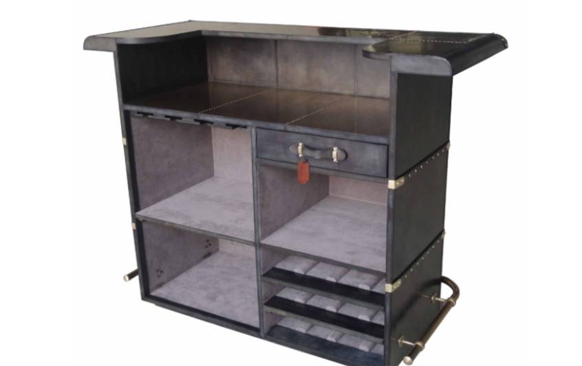A portable bar counter made with Pure leather and Brass; A look that will to the classic old time.