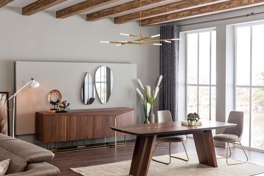 A tip slight brush of elegant gold mixed with walnut wood's elegance. Venus can be a attractive addition to your dining experience