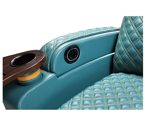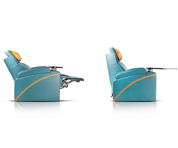 The ultimate amalgamation of design and functionality, Fusion recliner comes with an extra soft layer on the seat and armrest for some extra comfort. The intricate stitching, contrast quilt, round closed-back, and modern appearance makes it a sight to behold. It also has manually adjustable head cushion with belt mechanism and back-lit control to further enhance the comfort.