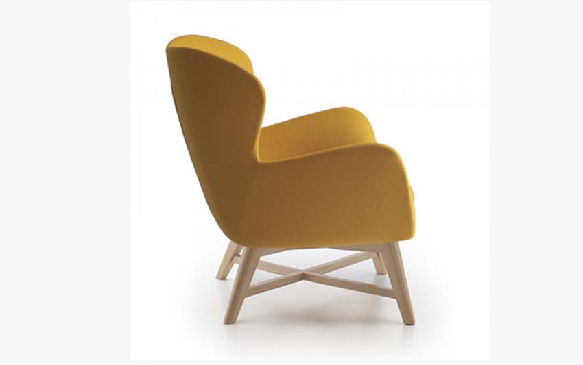 DIMENSIONS Armchair : W. 81 - H. 89 - D. 76 - Seat H. 42 - Arm H. 60 cm SHELL Steel framework, entirely moulded with cold-cure polyurethane. Seat moulded in double softness foam: softer in the centre for a better comfort and harder all around for a better upholstery. Detail of holes position on the underside of the armchair: mm 140 x 140. Wooden strips on the underside of the shell for stapling
