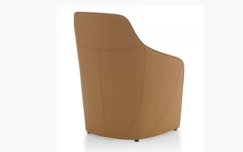 DIMENSIONS Armchair: W. 70 - H. 94 - D. 73 - Seat H. 42 - Arm H. 55 cm SHELL Steel framework in the shell and seat, entirely moulded in cold-cure polyurethane. Wooden strips on the underside of the shell and the seat for stapling the fabric. Elastic straps in the seat for a perfect comfort.