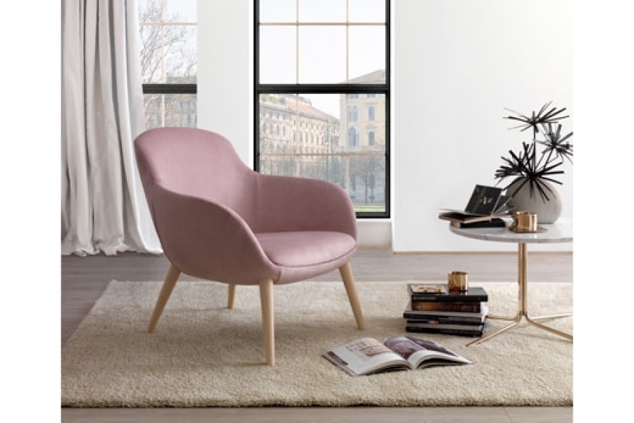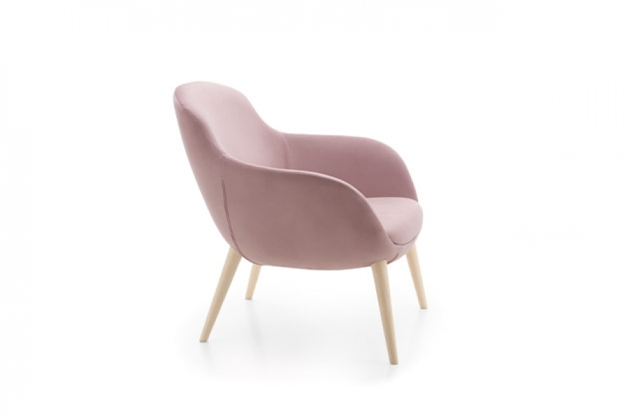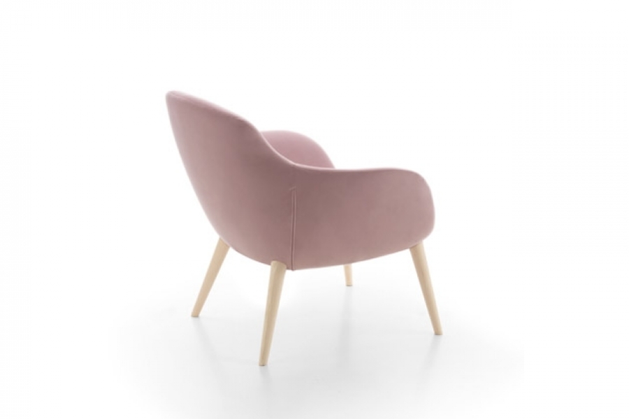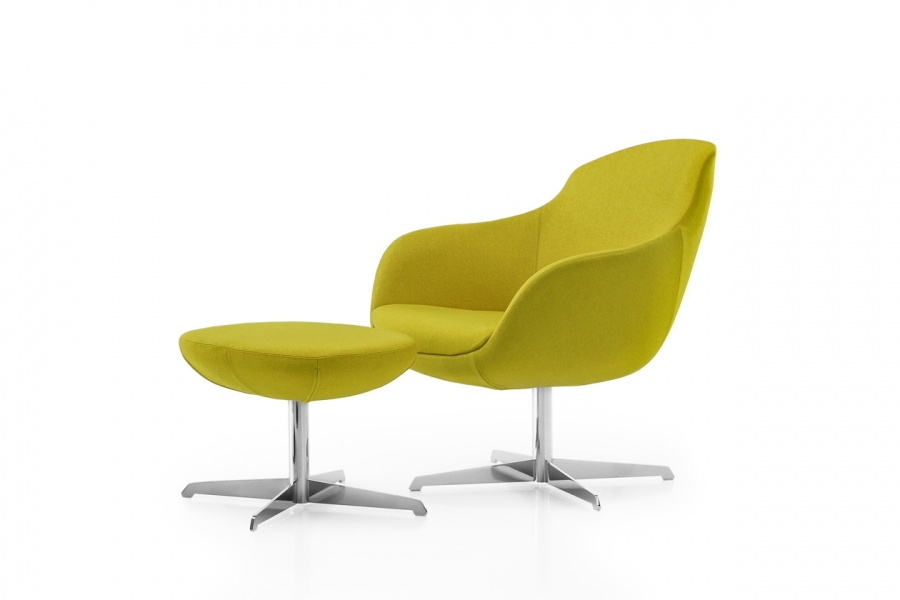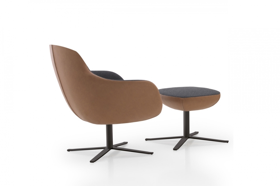 DIMENSIONS Armchair : W. 81 - H. 82 - D. 76 - Seat H. 42 - Arm H. 60 cm Pouf: L. 56 - H 43 - Prof. 46 cm SHELL ARMCHAIR Steel framework, entirely moulded with cold-cure polyurethane. Seat moulded in double softness foam: softer in the centre for a better comfort and harder all around for a better upholstery. Detail of holes position on the underside of the armchair: mm 140 x 140. Wooden strips&