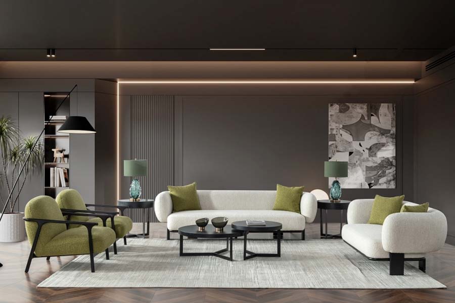 Majestic and elegant sofa that is sure to make a statement in any living space. The smooth structure adds a touch of glamour, while the fabric gives the sofa a luxurious look. The color is also very versatile and calm, so it can be paired with a variety of decor styles.