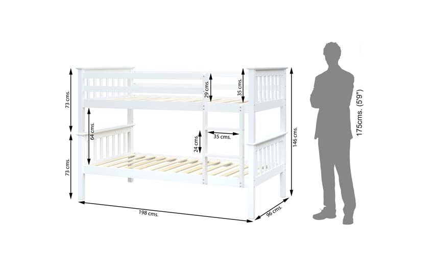 A classic bunk bed designed beautifully with a perfect finish. An ideal space saver. Elegant style which can fit in with almost any décor. You can even separate the bunks into two individual beds as your children's needs change. Made of top grade New Zealand pine wood, the entire set is durable and long-lasting.