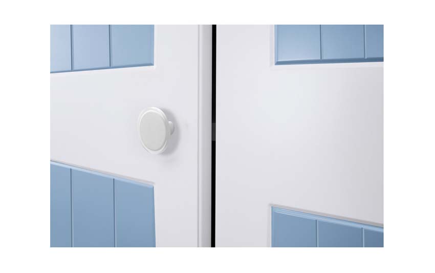 Sleek and stylish three-door wardrobe. Simple lines with punches of pastel Colours lend a unique personality to the design. Inside, the wardrobe is split into two sections - behind the double doors is a hanging rail with two shelves. While the single door hides four shelves that are great for toys, shoes, folded clothes and more.