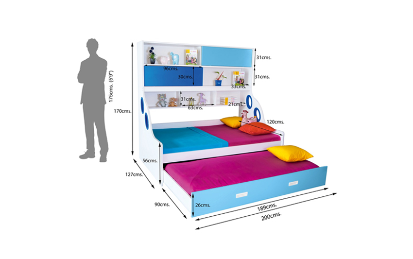 Make the most of the space in your child’s room with this bunk bed set. A 4 ft. width bed and a pull-out trundle bed (3 ft. width) below make it ideal space saver for your children.This bed features quality materials and workmanship and great styling. A versatile design that can cover both seating and sleeping needs.