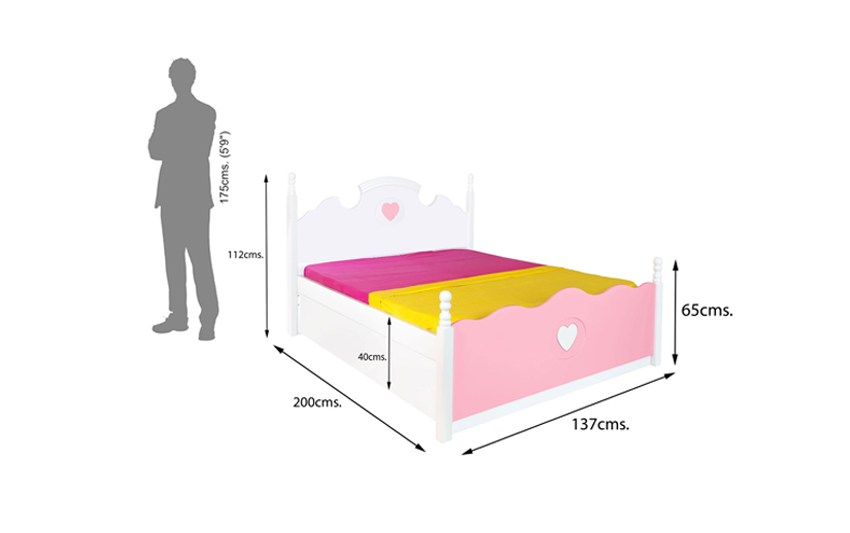 Stylish bed with gentle curves, specially designed with your princess in mind. Constructed from quality E-1grade engineered wood, the bed comes with an elegant headboard and a stylish foot board with a heart-motif. Soft soothing colour tones create a relaxed and a happy environment for your child.