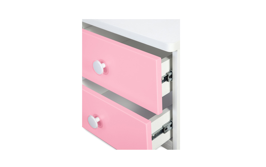 Simple, yet stylish Bedside Table comes with two spacious drawers in a combination of twoColours. Fine lines and elegant round knobs add a flashy touch to your child’s bedroom. The easy-glide metal runners on the drawers ensure that they do not jam no matter how many bedside essentials your child might cram in them! Soft Colour tones add a distinguished look to your child’s bedroom.