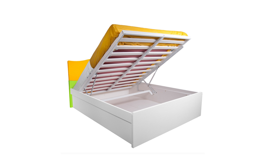 The bed features clean white frame with a curvy headboard and a soft graphic pattern that add a distinct style to your child’s bedroom. Soft pastel splashes add Colour and personality to your child’s room. The mattress base lifts smoothly with super soft hydraulic mechanism so that you may keep your winter wear, quilts, toys, carpets, suitcases and much more with ease in spacious bed box.