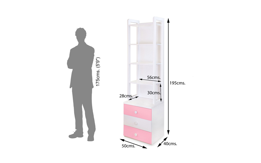 This sleek, vertical book shelf with three drawers helps your child keep his books and display items in place. It is functional, stylish and is sure to fit almost anywhere. Multiple open shelves provide plenty of space for storage and display for toys, books or dolls. Comes with three drawers at the bottom to organize other accessories or stuff in a proper manner.