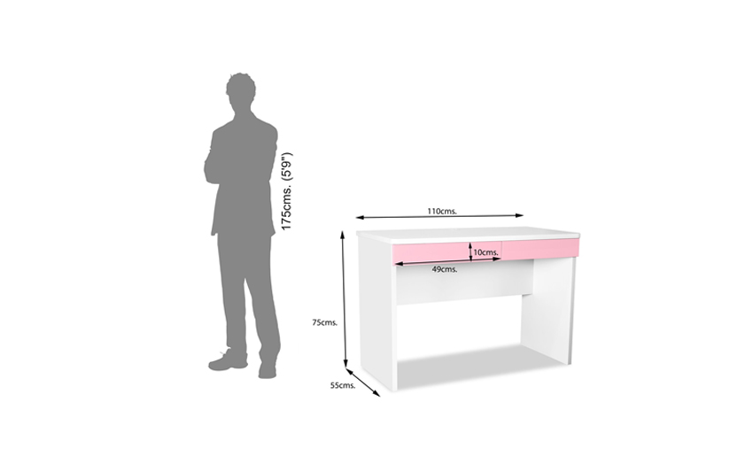 This desk in white offers a sleek styling for your child’s room. Two spacious drawers provides plenty of useful storage space to keep stationary and accessories in order. The easy-glide metal runners on the drawers ensure that they do not jam no matter how many bedside essentials your child might cram in them.Spacious surface area to work at ease and keep a laptop or a desktop.