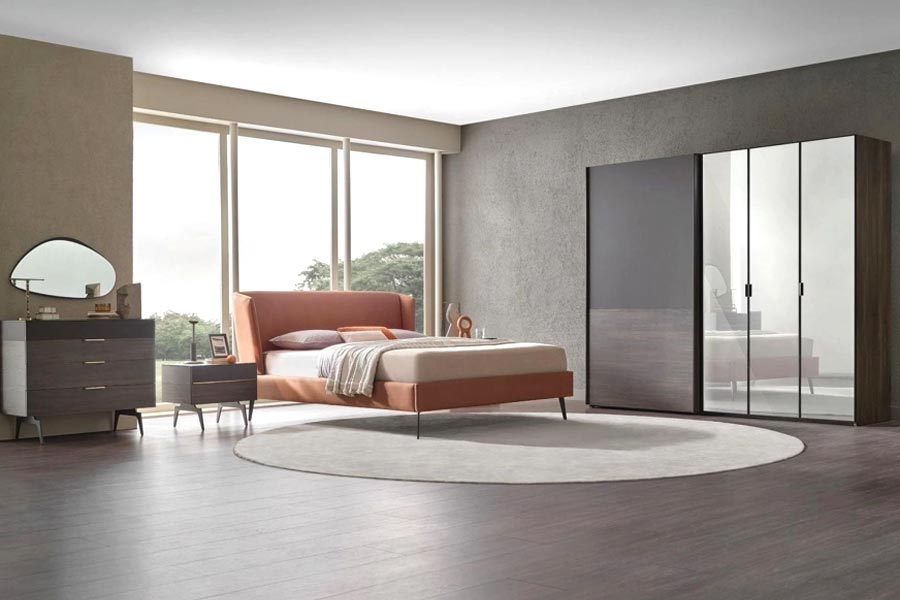 Reflecting the characterful elegance of rich material combinations, MARION BEDROOM brings the concept of contemporary luxury to bedrooms. Complementing the dark brown and walnut color combination as a stylish detail, bronze color handles and natural color dresser mirror emphasize the perfect aesthetics of the series. It adapts to different usage needs and square meters with 4 different cabinet