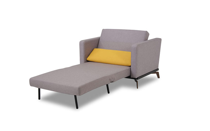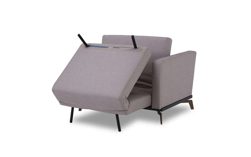 A functional bedroom sofa with five ratchet back positions that can be turned into a bed for one swiftly.