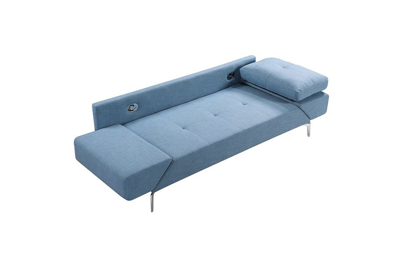 All about minimalism, this plush lounge two-seater sofa is sure to raise many an eyebrow. Gently pulling the lever gets both the arms to swivel 360 degrees to convert into a day time lounger or single sofa cum bed.
