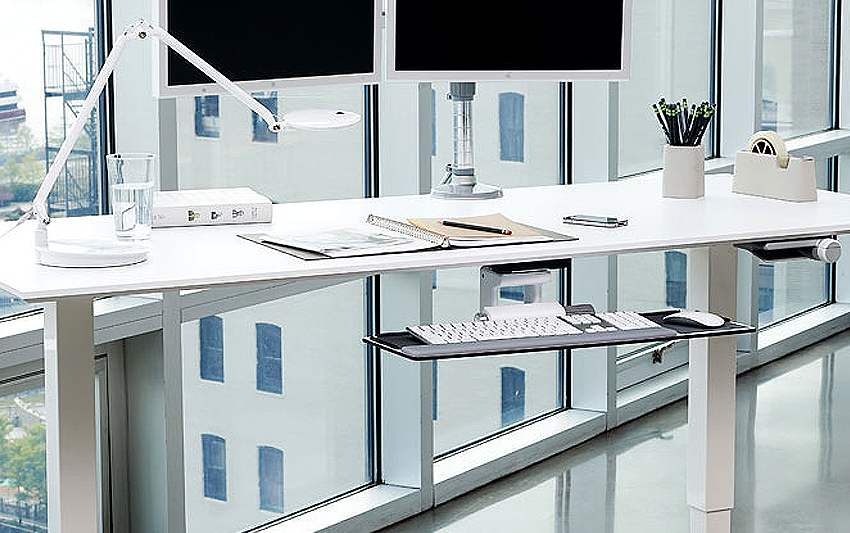 Float is a revolutionary standing office desk that brings effortless operation to traditional sit-stand products. Ease of use is at the heart of Float, as it seamlessly adjusts between sitting and standing postures without interrupting workflow. With a minimal aesthetic, Float complements traditional offices and home workspaces.